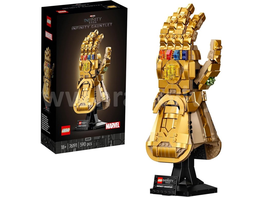 - Impozantní výstavní model LEGO® Marvel Rukavice nekonečna (76191) nádherně zachycuje styl filmových trháků Avengers: Infinity War a Avengers: Endgame studia Marvel.