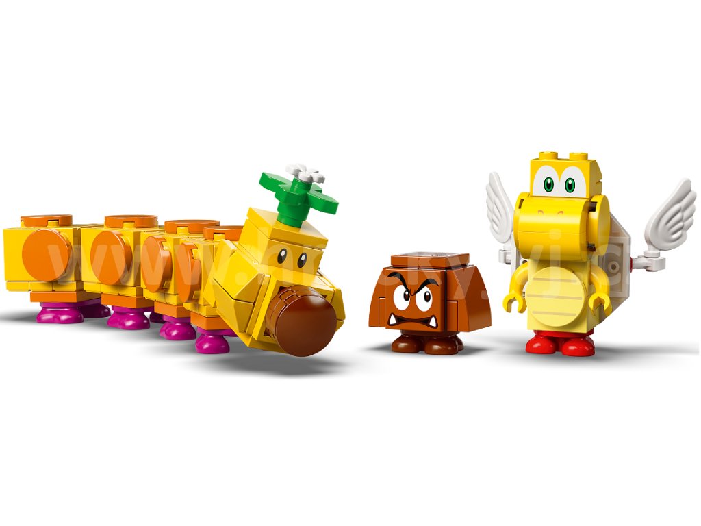Obsahuje LEGO® figurky kultovních protivníků, kterými jsou Wiggler, Goomba a Koopa Paratroopa. Těm se musí LEGO® Mario™ (figurka není součástí balení) postavit a přemoci je. Dále balení obsahuje posuvnou plošinu, most a plavidlo. Navíc nechybí speciální kostka Super Star, díky které můžete získat jedinečné schopnosti a ještě více odměn.