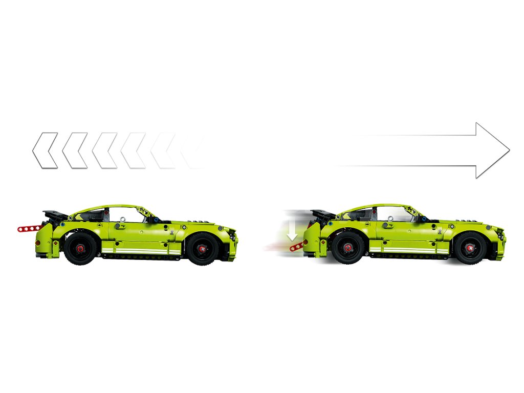 Staňte se legendou závodních dragsterů s tímto mimořádně výkonným autem. Užijte si zábavu při stavění modelu Ford Mustang Shelby® GT500® od LEGO® Technic a pak jej pořádně otestujte. Prožijte znovu vzrušení ze závodní dráhy a pořádně to rozjeďte s pomocí 2 natahovacích motorů. Prozkoumejte všechny funkce rozšířené reality v aplikaci LEGO Technic AR. Až se nasytíte akčních závodů, zaujme vůz čestné místo na výstavce.